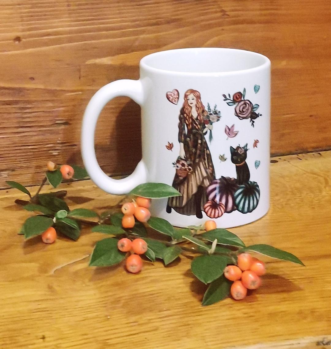 Pause café ou thé mystérieuse avec le mug "Magicienne" ; une ambiance automnale et enchantée pleine de poésie avec ce mug céramique réalisé en France. -Contenance 325ml.
