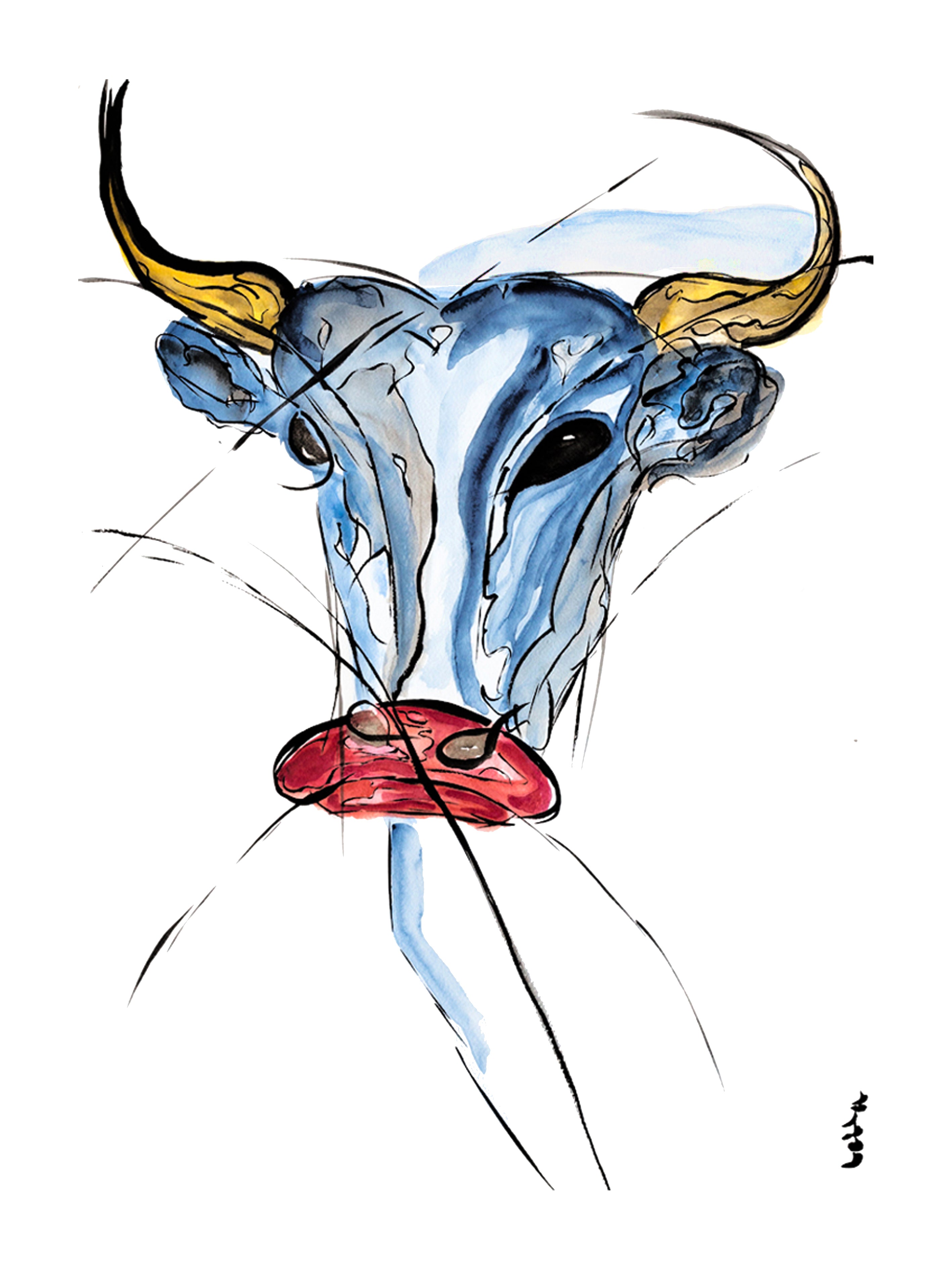Ce portrait de vache transcende le portrait animalier traditionnel avec une touche de modernité excentrique. Laissez vous emporter par l’univers décalé qu’il propose.