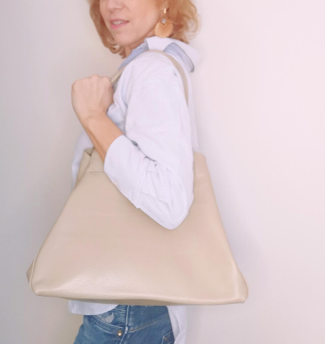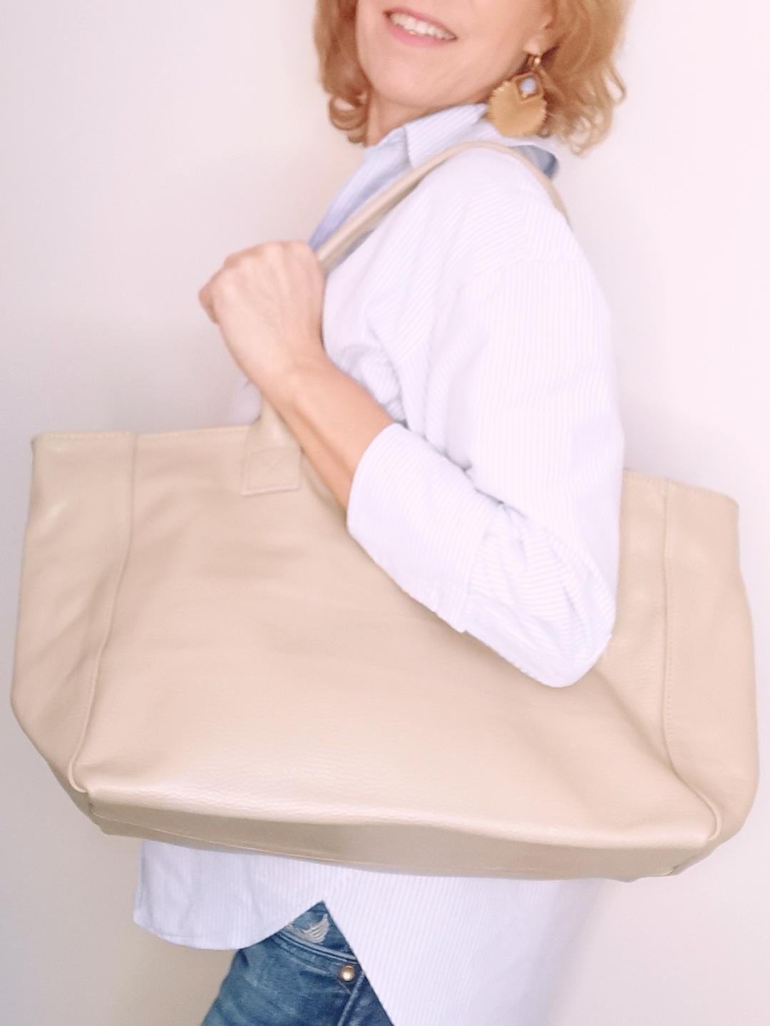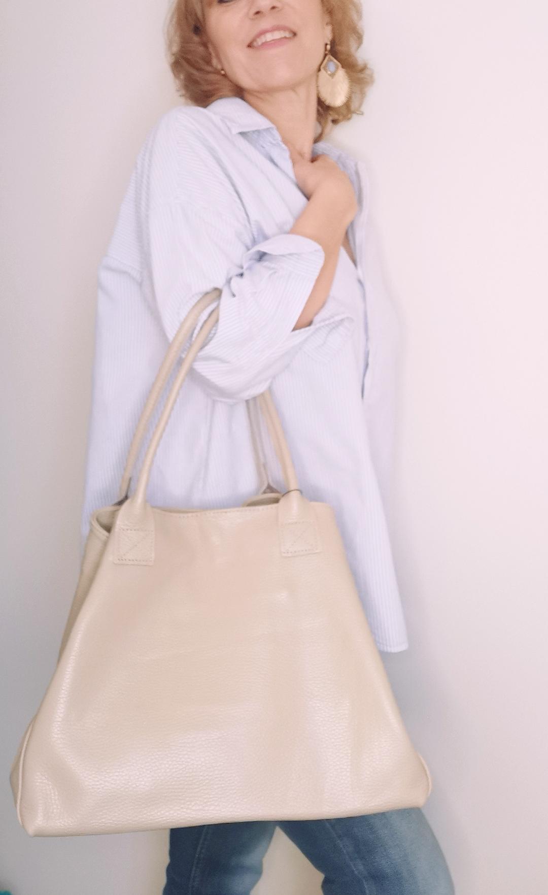 Sac à main femme cuir Dollaro Italien beige, transformable cabas ou sac à main.